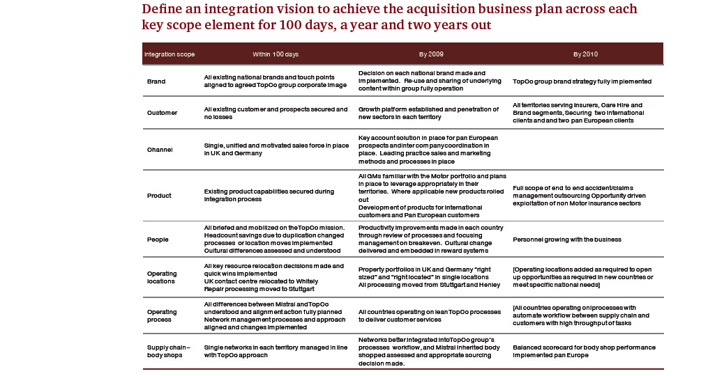 Innovation is a technology driven outsourcing business serving the insurance sector. It had an opportunity to purchase a subsidiary of Akzo Nobel, serving car fleet managers, car hire firms and insurance companies from a valuable and expensive to recreate infrastructure of service centres and supply chain networks in France Germany, Spain, Netherlands, Belgium, Switzerland and Austria. However, the target was making losses material to Innovation’s profitability, This posed key questions for Innovation on how to mitigate the risks of acquiring such a business and developing a deliverable plan for the combined group.